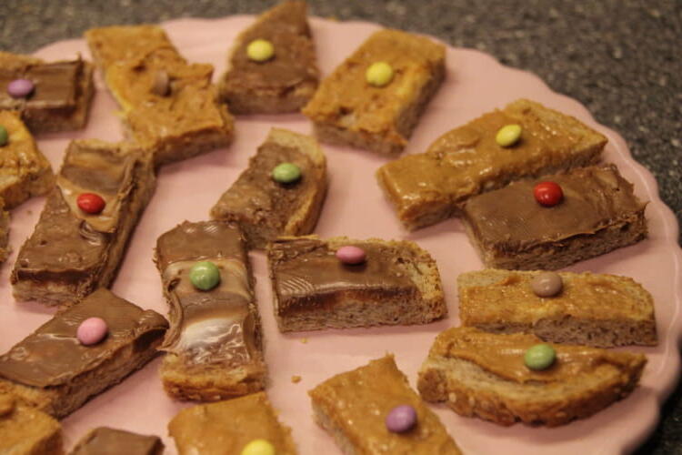 Roll out the puff pastry (I used the leftover puff pastry from a pie). Prick it, season with salt and pepper, and bake for about 15 minutes at 200°C. Blend it roughly.