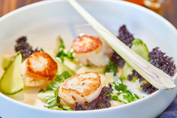 Sear the shrimp for one to two minutes in a buttered skillet.