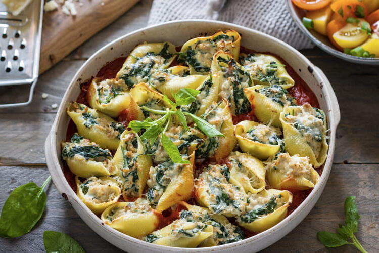 A delicious recipe for stuffed conchiglie with vuna. Vuna is a vegan preparation that has a taste similar to tuna. A revolution in plant-based cuisine.