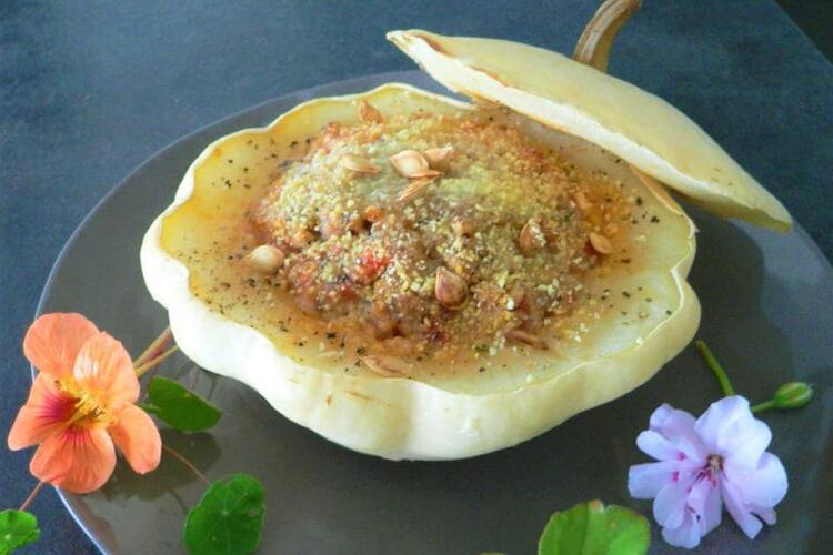 In a bowl, mix the drained vegetables with the sausage meat and 2 tablespoons of almond powder. Fill the squash, cover them with breadcrumbs. Bake in the oven at 180°C for 20 minutes.