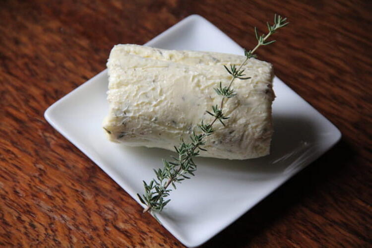 To preserve it in the freezer, place portions of thyme butter in ice cube trays. This butter pairs wonderfully with red meats or fish.