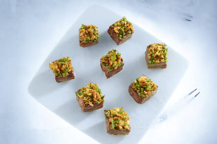 Seed and cut the bell pepper and cucumber into cubes (keep a few cucumber cubes for decoration).