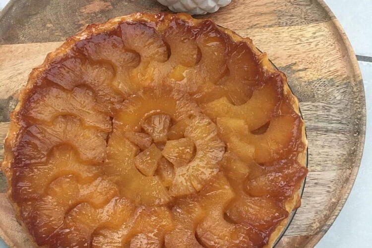 Gourmet and exotic variation of the mythical and traditional upside-down cake where pineapple is the star. It is convenient to make, easily and quickly, with affordable ingredients that last a long time.